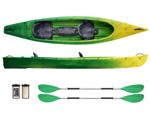 * У комплект сонячного (жовто-червоного) байдарки входять весла з поворотом на 60 градусів.