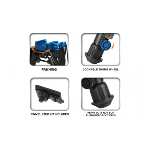Сошка має міцну суцільнометалеву конструкцію, з посиленими пружинами розтягування і додатковими стабілізуючими балками. Сошку можна встановити на планку Пікатінні, а за допомогою адаптера, що входить в комплект, також на стандартну насадку гвинтівки. Завдяки блокувальному важелю QD (Quick Detach) установка основи на рейку Picatinny або Weaver займає всього кілька секунд.