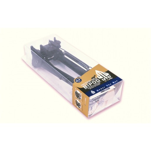 Пружинні ніжки регулюються по висоті в діапазоні 8-12,4 ", фіксуються положення і система швидкого розкладання за допомогою бічної кнопки. Коли ми не використовуємо сошку, ми можемо швидко скласти її в горизонтальне положення (вперед) без необхідності для зняття зі зброї.Стійке положення на землі забезпечують нековзкі гумові ніжки.