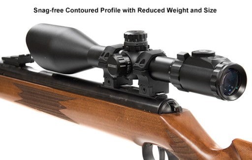 Сталева, точна конструкція кілець гарантує повну осьову установку прицілу, стабільний нуль нуля і стійкість до віддачі зброї. Монтажні кільця із серії Precision Optics Interface мають знімний стопорний штифт, який захищає оптику від двонаправленої віддачі, і затискний затискач на напрямних пружини для забезпечення нульового утримання.