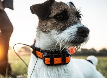 - Urządzenie dla psa T 5 z baterią litowo-jonową i pomarańczowym paskiem obroży