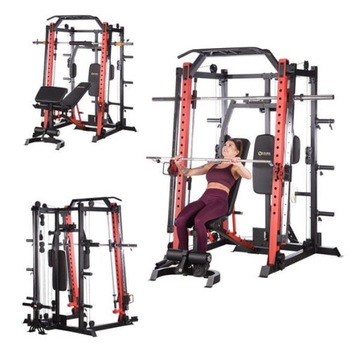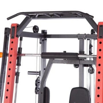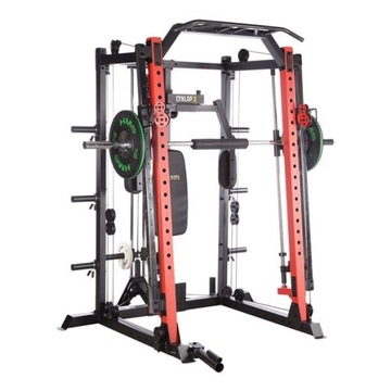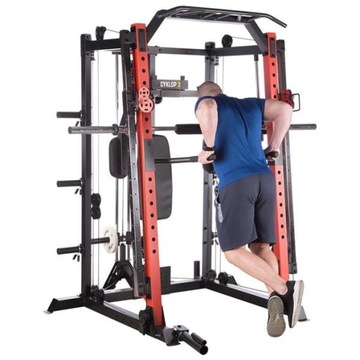 CYKLOP3, to nie tylko suwnica. To połączenie suwnicy, drążka do podciągania, butterflya, stojaka na sztangę oraz dwóch wyciągów z regulowaną wysokością. W zestawie z CYKLOPEM3 znajduje się również ławka, wyposażona w możliwość regulacji kąta nachylenia oparcia i siedziska oraz modlitewnik z uchwytem na sztangę. Zbierając wszystkie elementy w całość, otrzymujemy wszechstronny sprzęt, umożliwiający wykonanie ćwiczeń na wszystkie grupy mięśniowe. Efektywność treningu oraz jego możliwości zwiększą się za sprawą dołączonych do zestawu akcesoriów w postaci uchwytów do wyciągu, montowanych poręczy do dipów czy uchwytu landmine na sztangę.
