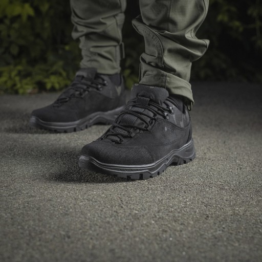 Кросівки M-Tac Patrol від бренду M-Tac поєднують в собі доступну ціну і хорошу якість. Взуття виготовлене з високоякісної натуральної шкіри та синтетичних матеріалів. Наконечник взуття посилений додатковою підкладкою зі шкіри, покритої гумою. Спосіб кріплення підошви: термовакуум.
