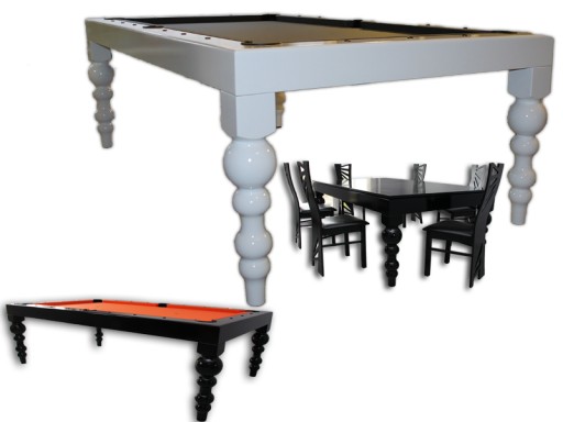 Ця модель створена так, щоб накритий стільницею виглядати як обідній стіл, сіток і кошиків не видно. Вони монтуються в ніжці, тому візуально не нагадують більярдний стіл. Його охоче купують для віталень, а в поєднанні з насиченими кольорами це також дуже престижна модель.Дизайн ретельно продуманий, щоб покупець жодним чином не торкався конструкції столу і зручно сидів за ним.