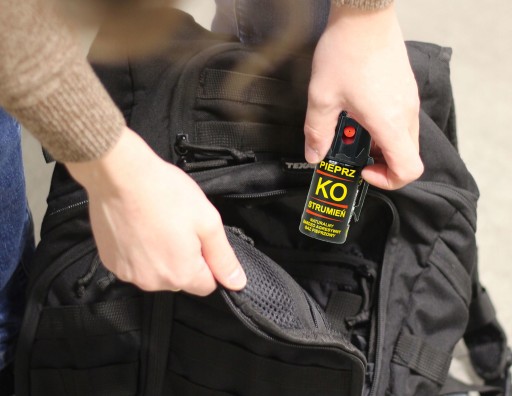 Ручний перцевий балончик у вигляді струменя дозволяє захиститися від агресивного нападника або групи агресорів, також у стані запаморочення або під впливом психоактивних речовин. Перцевий спрей також гарантує ефективний захист від агресивних тварин. Перцевий спрей допомагає безпечно повернутися додому. Це дуже допомагає під час маніфестацій, протестів, пікетів, маршів, одиночних прогулянок, індивідуальних видів спорту на полі.