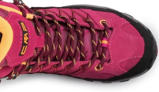 Водонепроникне туристичне взуття CMP із кольоровими деталями, які виділяються та привертають увагу, зберігає спортивний дизайн. Підошва на основі технології CMP FullOn GRIP забезпечує дуже хороше зчеплення з різними типами поверхонь. Взуття RIGEL має вбудований стабілізатор щиколотки з кевлару - одного з найміцніших матеріалів, волокна якого стійкі до розтягування. Це надає щиколотці жорсткості та опори, що не дозволяє їй рухатися під час ходьби по нерівній місцевості. Підошва взуття виготовлена з легкої, гнучкої та пружної піни EVA (етилен-вінілацетату). Додаткове посилення TPU було використано в задній частині підошви для підвищення стабільності та підтримки стопи. Трекінгове взуття Rigel доступне у версії High MID зі шкіри та у версії LOW, оздобленій сітчастим матеріалом з високим ступенем повітропроникності.
