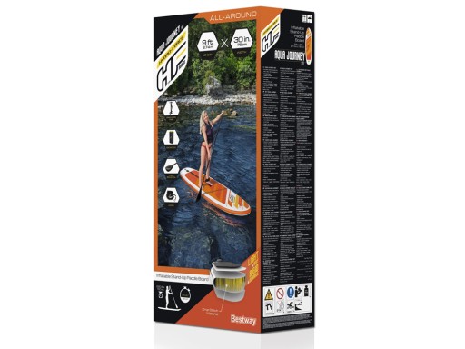 Надувна дошка Aqua Journey Set Bestway розміром 274 x 76 x 12 см — чудова пропозиція для майбутнього літа та ідеальний спосіб активно провести вільний час біля води. Дошка виготовлена за допомогою крапельного шва, тисячі волокон з’єднують верх і низ дошки, забезпечуючи міцність і довговічність, дозволяючи при цьому багаторазово надувати і здувати без втрати жорсткості.