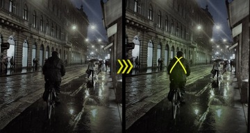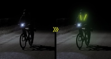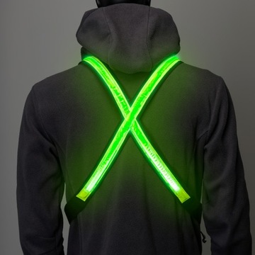 Kamizelka posiada szerokie paski z diodami LED które po uruchomieniu świecą na całej długości. Dzięki temu zyskujemy bardzo mocne oświetlenie zarówno z przodu jak i tyłu, które widoczne jest z nawet 100 metrów odległości.