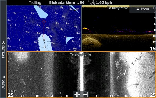 Після перемикання на накладення даних Genesis Live ми швидко отримуємо батиметричну карту місця риболовлі, в якому пливемо