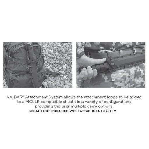 Насадка сумісна з ременями системи MOLLE. Його також можна використовувати з продуктами інших виробників, крім Ka-Bar, але їх сумісність не гарантується.