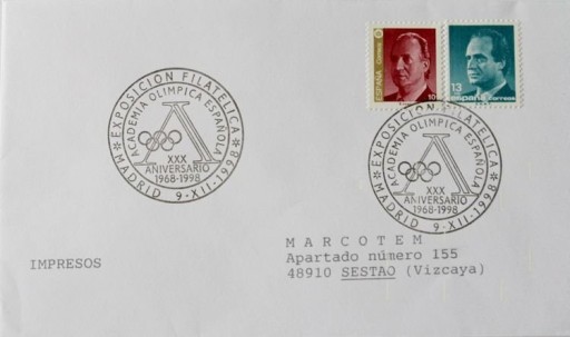 Конверт FDC 30 років Іспанської Академії Олімп.