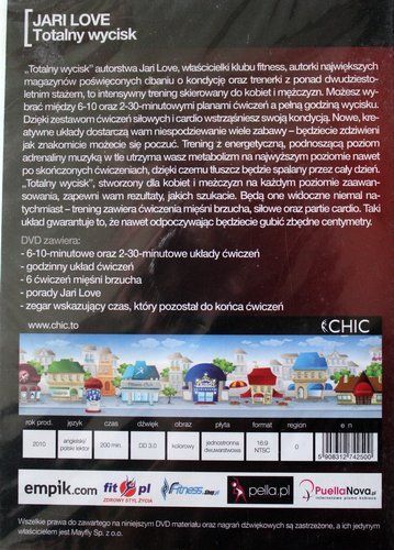 Стан: ДУЖЕ ДОБРЕ (у фабричній упаковці): Ярі Лав, власник фітнес-клубу, автор найбільших фітнес-журналів і тренер з понад двадцятирічним досвідом, представляє в цьому відео інтенсивну програму тренувань, адресовану жінкам і чоловікам. Ті, хто займається спортом, можуть вибирати між планами вправ тривалістю 6-10 і 2-30 хвилин і цілу годину твердого жиму лежачи. Завдяки комплексам силових і кардіо вправ тренується покращить свою фізичну форму. Нові креативні набори вправ принесуть масу задоволення. Як запевняє автор, тренування під енергетичну музику, що піднімає адреналін, навіть після завершення вправ підтримуватимуть ваш метаболізм на найвищому рівні, завдяки чому жир спалюватиметься протягом дня. «Total Squeeze», програма вправ, створена для чоловіків і жінок будь-якого рівня кваліфікації, забезпечить вам результати, яких ви шукаєте. Фільм записаний з польською озвучкою та оригінальним коментарем англійською мовою.