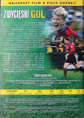 Стан: ДОБРЕ: Художній фільм, знятий у 2000 році, розповідає історію вигаданої шотландської футбольної команди другого дивізіону «Кілнокі», яка починається з приходом відомого нападника Джекі МакКвіллана (роль якого виконує відомий шотландський футболіст Еллі МакКойст). досягти успіху і вийти у фінал Кубка Шотландії. Акторський склад фільму доповнюють відомі американські актори - Майкл Кітон і Роберт Дюваль, які грають ролі господаря Кілнокі і тренера відповідно. На думку критиків, «Переможний гол» — один із найкращих фільмів про футбол, коли-небудь знятих. Майстерно знятий, з ефектними фотографіями та якісно проведеним дійством, він може порадувати не лише футбольних уболівальників. Фільм записується з можливістю вибору субтитрів або озвучення польською мовою.
