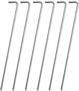Pojedynczy zestaw zawiera 6 sztuk szpilek namiotowych o długości 23cm, wykonanych z mocnej stali.