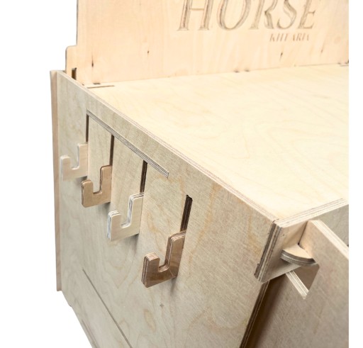 - Кількість гачків для аксесуарів: ззаду - 9 гачків; з боків: по 4 гачка (всього 17 гачків). Кожен гачок знімний, гачки дерев'яні та надійно закруглені. Додатково на внутрішній або зовнішній частині галсового приміщення можна встановити бічні гаки;