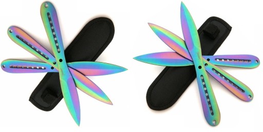 Ножі виготовлені з високоякісної нержавіючої сталі 420, яка додатково оксидована в райдужні кольори.