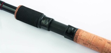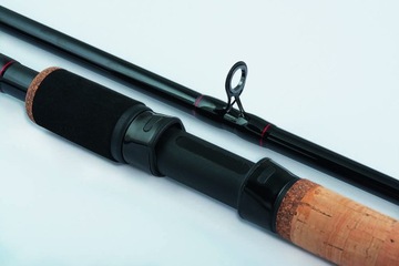 A rod with fast and progressive action, designed for medium and long range fishing. SHMR carbon blank. Reinforced component joints. 3 tips with light, medium (glass) and strong (carbon) action. The handle is made of natural cork with a ribbed EVA handle and a round rubber stopper. Twisted reel seat, integrated into the handle. S-SiC guides on a double foot (single on the top elements). It is perfect for fishing in still and flowing water. Perfect for catching tench, bream, carp and grass carp. The stick is extremely light (weighs only 190g).