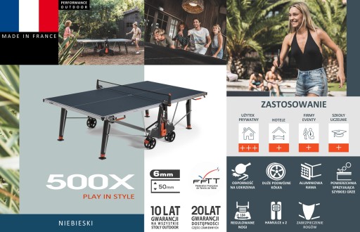 Динамічний зовнішній вигляд 500X поєднує в собі клас і сучасність. Дизайнери подбали про найдрібніші деталі, додавши кілька важливих доповнень до нової колекції столів, спираючись на відгуки клієнтів і власний 50-річний досвід. Стійка, підставки для напоїв, захист кутів столу або повністю висувна сітка в складеному стані – це деталі, які виділяють стіл серед конкурентів. Експерти з Корнільо, Франція, гарантують не менше 10 років задоволення.