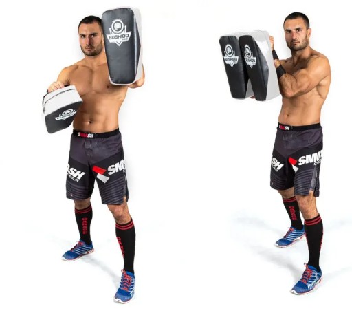 Щит має ручки і 2 липучки, завдяки яким він міцно кріпиться на руці. Він не зісковзує і не скручується навіть під час інтенсивних тренувань.