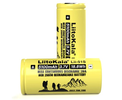 У набір входять два міцних фірмових літій-іонних елемента LiitoKala 26650 5100mAh