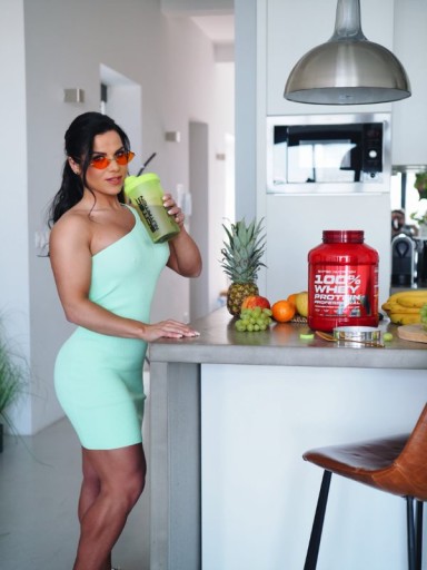 Інгредієнти: концентрат сироваткового протеїну (виготовлений з молока, емульгатор: соєвий лецитин), таурин, ароматизатор (полуниця), декстроза, L-глутамін, хлорид натрію, барвник (бетанін), загущувач (ксантанова камедь), підсолоджувачі (ацесульфам К, сукралоза) , регулятор кислотності (лимонна кислота).