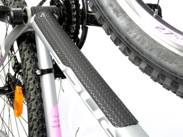 Thanks to this combination, an ultra-light, thick, very durable plastic was created, which is perfect for protecting bicycle frames in difficult off-road conditions.