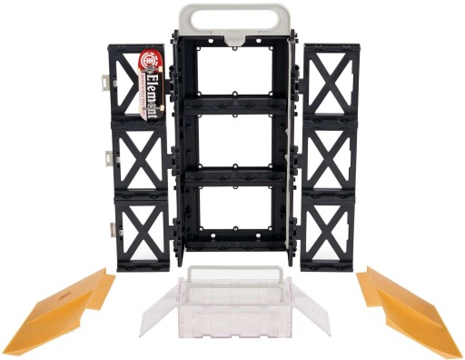 Набір складається з футляра, який стане ідеальним місцем для зберігання вашої колекції міні-скейтбордів. Він вміщує 24 дошки, тому ви можете брати з собою в подорож улюблені скейтборди. Він має можливість розгорнути корпус, щоб перетворити його на рампу з куточком і поручнями для виконання трюків. Скейтборд із серії ELEMENT, що входить у комплект, подарує море задоволення.