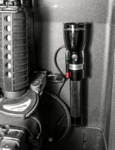 Зарядна станція, крім зарядки акумулятора, також служить постійним місцем зберігання ліхтарика,