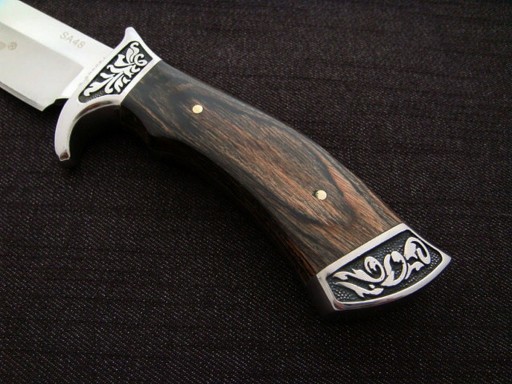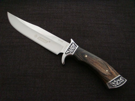 Ніж має конструкцію full-tang і виготовлений зі сталі №440. Ергономічна ручка, виготовлена з металу та дерева. Він має ідеальний профіль, що забезпечує відмінне зчеплення. У комплект входить чохол з кріпленням на пояс. Ніж новий та гострий.