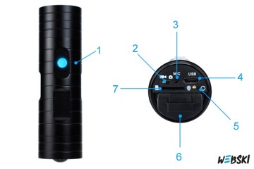 - Przełącznik trybu Wideo (niebieska dioda) / Foto (czerwona dioda)