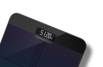 Dzięki wbudowanemu wyświetlaczowi o przekątnej 3,4″ możesz wygodnie sprawdzić nawet 8 różnych wyników pomiarów - dostępnych jest aż 14 funkcji, spośród których możesz wybierać w aplikacji. Domyślnie ustawione są 4 z nich - masa ciała, wykres masy ciała, tkanka tłuszczowa oraz tętno. Kiedy ekran jest wyłączony, pozostaje właściwie niewidoczny - nie zaburza designu wagi, nadając jej jednolity, elegancki charakter.