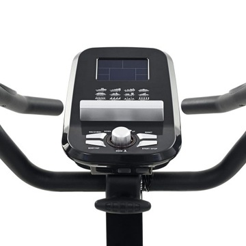 Wyposażony w ciężkie koło zamachowe ze sterowanym komputerowo oporem i wyświetlaczem LCD ten pionowy rower zapewni Ci efektywny trening. Możesz obserwować swoje wyniki na ekranie LCD, który pokazuje informacje o czasie trwania ćwiczeń, bieżącej prędkości, dystansie, spalonych kaloriach, tętnie, obrotach na minutę, odpoczynku i poziomie tkanki tłuszczowej. Komputer posiada również uchwyt na tablet, możesz więc oglądać filmy w trakcie treningu na swoim tablecie. Rower do ćwiczeń fitness jest ergonomiczny. Siodełko może być regulowane w poziomie i w pionie, a ustawienie kierownicy dostosowane do Twoich preferencji. Antypoślizgowe pedały oferują optymalne przełożenie siły z Twoich stóp na pedały, a paski zapobiegają przypadkowemu ześlizgnięciu się stóp. Precyzyjnie wyważone koło zamachowe działa gładko, cicho i nie wymaga konserwacji. Rolki transportowe ułatwiają przestawianie ergometru, a elementy poziomujące zapewniają mu stabilność. Urządzenie kardio wymaga montażu.