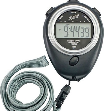 Stoper elektroniczny ST02 marki Allright jest doskonałym przyrządem pomiarowym dla każdego miłośnika sportów uprawianych „na czas”. Model ST02 to podstawowy rodzaj stopera, nie ma w nim ani jednej zbędnej funkcji, za to oferuje wszystko, co konieczne, by Twój wysiłek był maksymalnie wydajny i pozwala na precyzyjny pomiar czasu z dokładnością do jednej setnej sekundy. W tym modelu mamy również możliwość kontroli czasu okrążenia i międzyczasu. To pozwala na osiągnięcie perfekcyjnych wyników pomiarów, co jest szczególnie przydatne przy biegach sprinterskich, gdzie każda setna sekundy może zadecydować o wygranej. Stoper sportowy ST02 marki Allright dodatkowo został wyposażony w zegar i kalendarz oraz alarm z funkcją drzemki. Wygodny dostęp do przycisków funkcyjnych, ergonomiczny kształt i czytelny wyświetlacz gwarantują możliwość wygodnego odczytania czasu bez przerywania ćwiczeń. Dzięki zainstalowanej lince stoper ST02 można wygodnie zawiesić na szyi. Obowiązkowe wyposażenie każdego zawodnika oraz trenera.