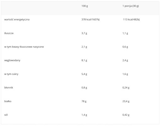 В одній порції продукту міститься цілих 23,4 грама білка! Завдяки такій високій дозі протеїну добавка забезпечить правильну регенерацію м'язів після виснажливого тренування. Крім того, він має антикатаболічну дію, тобто запобігає розпаду м’язів. Продукт характеризується високою біодоступністю, тому він швидко та ефективно постачає поживні речовини до м’язів, що в подальшому перетворюється на досягнення.