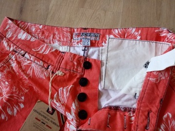 Nowe z metką kolor pomarańczowy z dodatkami w rozporku guziki bawełna