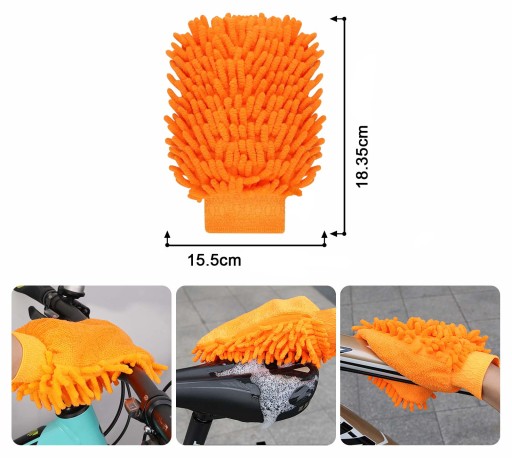 - помаранчева рукавичка з мікрофібри - для миття рами, сідла, крил
