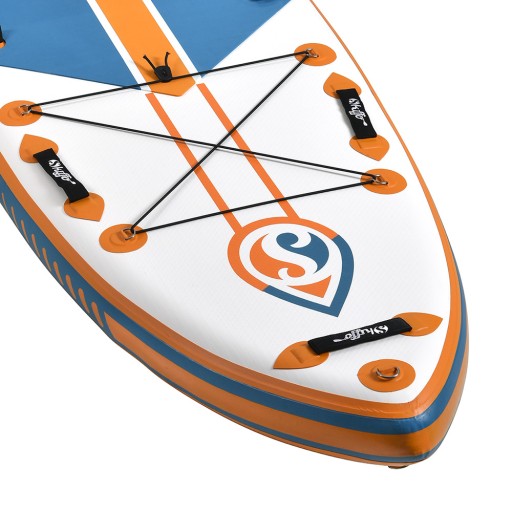SUP-дошка Skiffo Sun Cruise 11.2 з нової колекції 2021 року - цікава, дуже жорстка дошка, стійка і маневрена, дошка загального користування, має спеціальну опору для ніг - зручно сісти в крісло для байдарки. Версія XL характеризується дуже високою водотоннажністю та максимальною вагою користувача до 145 кг, завдяки чому ми можемо плавати на дошці разом з нашим партнером або нашою дитиною. Все це з дуже хорошою, зразковою обробкою. Чотири транспортувальні ручки дозволяють легко переносити і плавати на животі у хвилі.