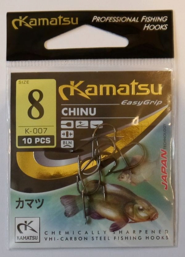 Już nasi przodkowie wiedzieli że podstawowym i najistotniejszym elementem każdego zestawu służącego do połowu ryb jest odpowiednio dobrany i ostry haczyk o optymalnie wyprofilowanej krzywiźnie kolanka. Stosując haki serii Kamatsu mamy możliwość dobrania tego elementu zestawu do wielkości i gatunku poławianych ryb, rodzaju i rozmiaru stosowanej przynęty a także rodzaju linki. Parametry te pozwalają na dostosowanie się do warunków każdego łowiska. Technologia XXI wieku pozwoliła na skomputeryzowanie procesu projektowania i produkcji przez co haki zyskały jeszcze większą precyzję wykonania, twardość i ostrość. W licznej, ciągle rozrastającej się rodzinie Kamatsu znajdziecie haki na każdą rybę, występują haki pojedyncze, podwójne, kotwice a także haki jigowe, antyzaczepowe i to wszystko w wielu rozmiarach i kolorach pokrycia o różnych właściwościach. Znak Kamatsu to gwarancja, że każdy hak przeszedł kontrolę jakości i nie zawiedzie na łowisku.