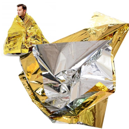 Рятувальна ковдра має багато термінів, зокрема: термоковдра, фольга NRC, рятувальна ковдра, ковдра, термоізоляційна плівка, термофольга, сріблясто-золота фольга, тому ви можете знайти цей асортимент під такими назвами, але це завжди той самий продукт . Використовується як захисна плівка від перегріву або переохолодження потерпілого. Плівка демонструє дуже хорошу стійкість до ривків і розтягувань. Користуватися фольгою дуже просто, потрібно лише знати, яка сторона для чого використовується. Срібна сторона, яка використовується з боку пацієнта, дозволяє нагрівати, а коли ми використовуємо фольгу срібною стороною назовні, ми охолоджуємо тіло. Невеликий розмір фольги дозволяє розмістити її практично скрізь. Розмір 210 х 160 см.
