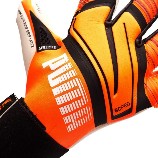 - Подвійна обплетення великого пальця та латексні вставки максимізують контакт латексу з м’ячем навіть зі скрученими пальцями