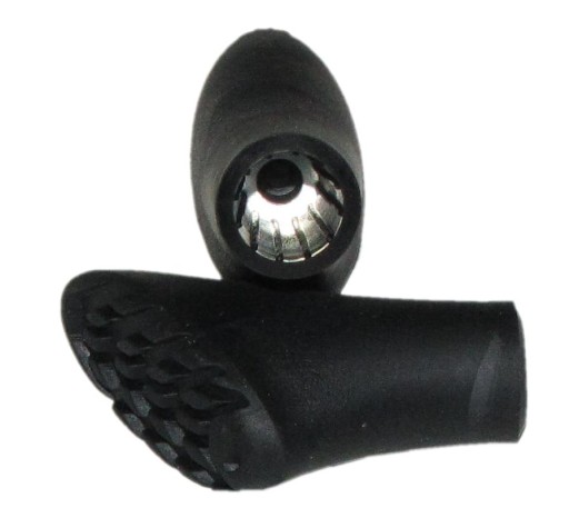 Найважливішим «доповненням» до палиць для скандинавської ходьби є ковпачки (наконечники), які надягають на кінчик палиці. Завдання насадок (наконечників) — передавати силу відштовхування жердин на землю. Вони використовуються для захисту кінчиків наших стовпів, які можна легко пошкодити. Практично завжди ми повинні надягати шапки на палиці, за винятком пляжів і сильного снігу, і, звичайно, льоду. Отже, ковпачок (наконечник) є тим елементом стіка, який найшвидше зношується (стирається) і вимагає систематичної заміни. Дана модель навісного обладнання призначена для лісових доріжок, польових доріжок, а також для доріг з твердим покриттям (гравій, шлак). Чим твердіша поверхня, тим більше стирання. Тому на бетонних, асфальтованих або асфальтованих дорогах розетки зношуються швидше. Пропоновані нами кріплення підходять для стовпів діаметром 10-11 мм.