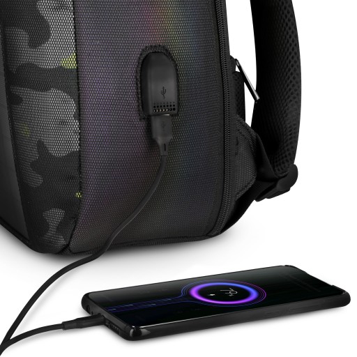 Рюкзак Spokey CITY SOLAR має інтегровану сонячну панель, яка за допомогою сонячної енергії може повністю зарядити акумулятор смартфона приблизно за 7-8 годин при яскравому сонячному світлі та безхмарній погоді. Панель працює навіть у похмурі дні! USB-порт розташований поза рюкзаком і додатково захищений. З таким рюкзаком вам не доведеться турбуватися про те, що телефон розрядиться або брати з собою важкі та громіздкі павербанки. Цей функціонал дуже важливий під час тривалих прогулянок, поїздок і при тривалій роботі на відкритому повітрі.