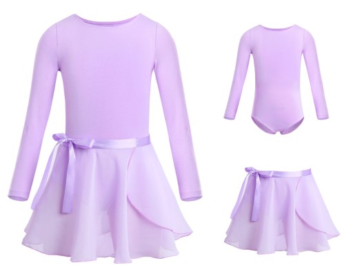 Професійне гімнастичне боді для дівчинки з довгими рукавами та спідницею.
