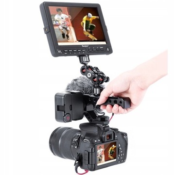 The camera grip has been equipped with numerous threaded mounts and 3 cold feet for safe mounting of the preview monitor, additional LED lamp, microphone and other accessories.