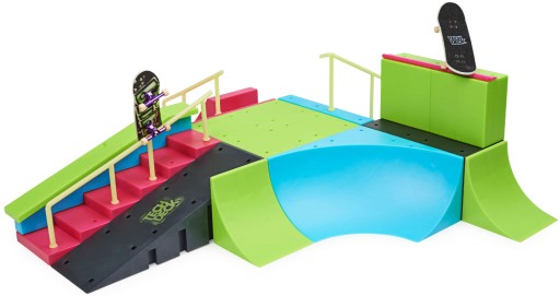 Набір складається з величезної рампи Neon Mega Park, яка має безліч елементів, що дозволяють робити супер трюки, і двох скейтбордів.