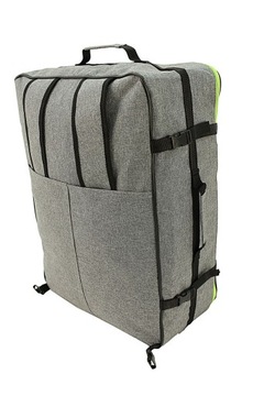 The 26B model is a very functional variant of hand luggage, the great advantage of which are innovative solutions. This model can be used as a tourist backpack (thanks to the shoulder straps attached to the back), as a travel bag (thanks to the upper and side handle) and as a cabin trunk (thanks to the vertical strap that allows you to attach it to the suitcase frame).
