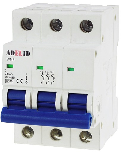 - 1x WN6 3P автоматичний вимикач, "C" 16A