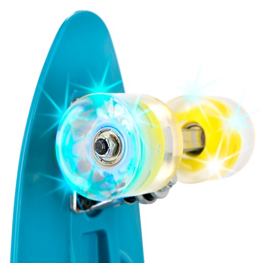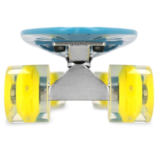 Вудка Spokey FISH швидка, стійка і безпечна завдяки використанню великих (60 x 45 мм) поліуретанових (PU) коліс з твердістю 90A. Ця комбінація дозволяє досягати високих швидкостей, зберігаючи належне зчеплення та поглинаючи вібрації, що виникають під час їзди по нерівній поверхні. Використання поліуретану гарантує, що колеса зношуються дуже повільно, оскільки це надзвичайно стійкий до стирання матеріал. Більше того, колеса підсвічуються під час руху, тому не тільки привертають увагу, але й приносять ще більше задоволення (світлодіоди світяться через тертя підшипників, що створює електричні заряди). Універсальні високоякісні карбонові підшипники ABEC-5 є водночас міцними та швидкими, тому скейтборд Spokey FISH ідеально підходить як для нерівного тротуару, так і для гладкого асфальту.