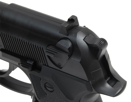 Ліцензійна копія Beretta Elite II з 12-грамовим картриджем CO2. Більшість пневматичної зброї виготовлено з міцного пластику.