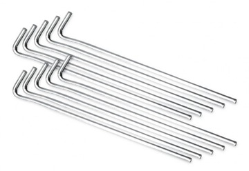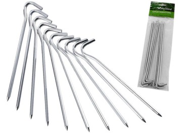 Zestaw stalowych szpilek namiotowych Rockland powinien posiadać każdy użytkownik namiotu. Z reguły brak kilku szpilek stwierdzamy dopiero wtedy, gdy z dala od cywilizacji, późnym wieczorem, w strugach deszczu, tocząc nierówną walkę z wichurą, próbujemy rozłożyć namiot. I wtedy właśnie zapasowa szpilka staje się artykułem pierwszej potrzeby… . Zostały wykonane z mocnej stali. Zagięty koniec ułatwia wbicie w ziemię na większą głębokość np. butem.
